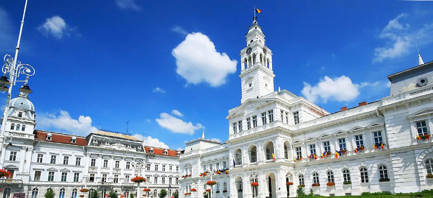 El palacio se asoma a la hermosa plaza Sfatului, que recuerda mucho a los centros históricos de algunas ciudades de Austria o Hungría, testimonio del turbulento pasado de Arad.
